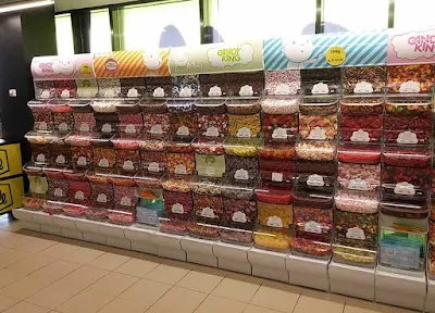| D-terminaalia vastapäätä olevan Callen irtokarkkihyllyä |